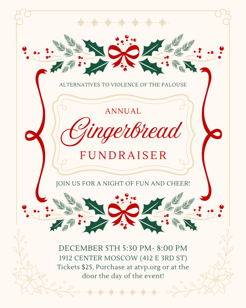 Our gingerbread fundraiser here and better than ever! Come join us for festive fun and support survivors here in the Palouse!